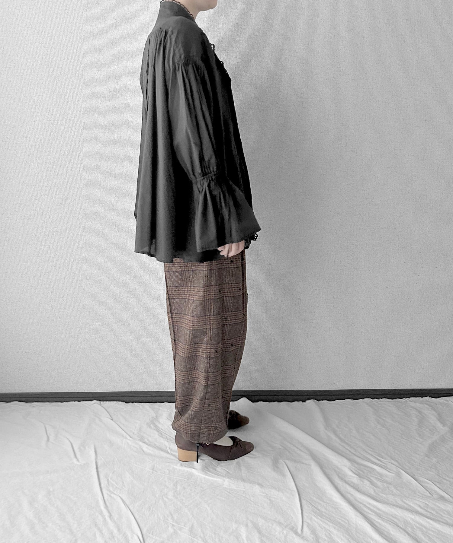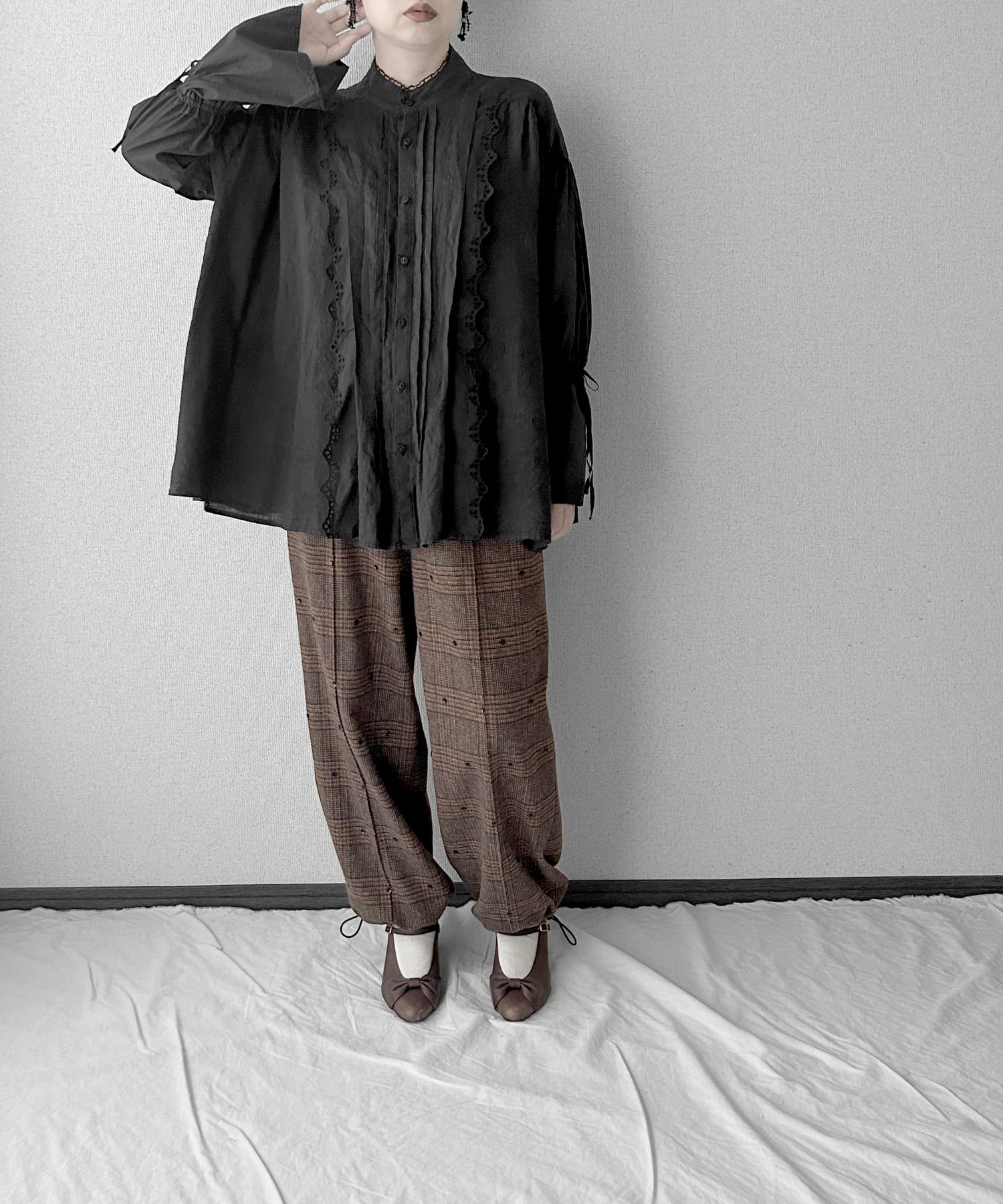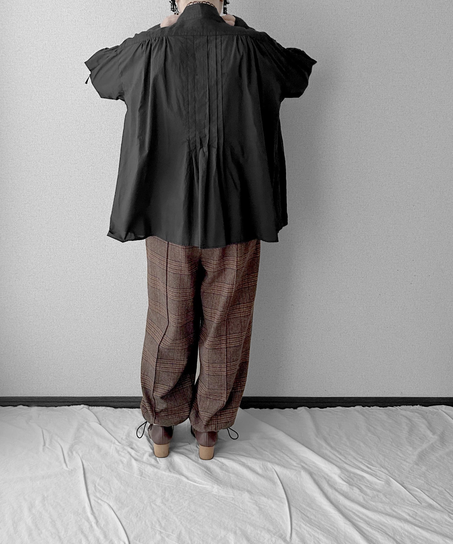 ・ギャザーとタックでボリュームを出したシルエット
