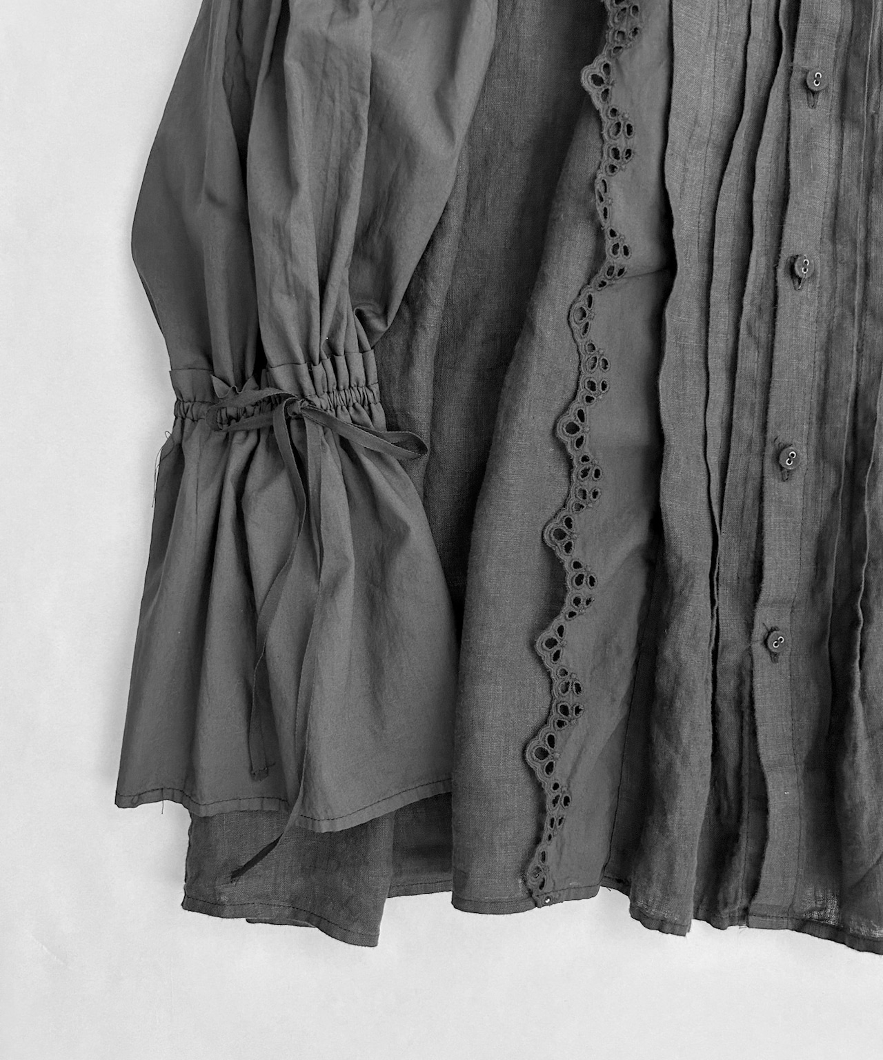 異素材使い・レースやタックなどディティールを詰め込んだデザインに