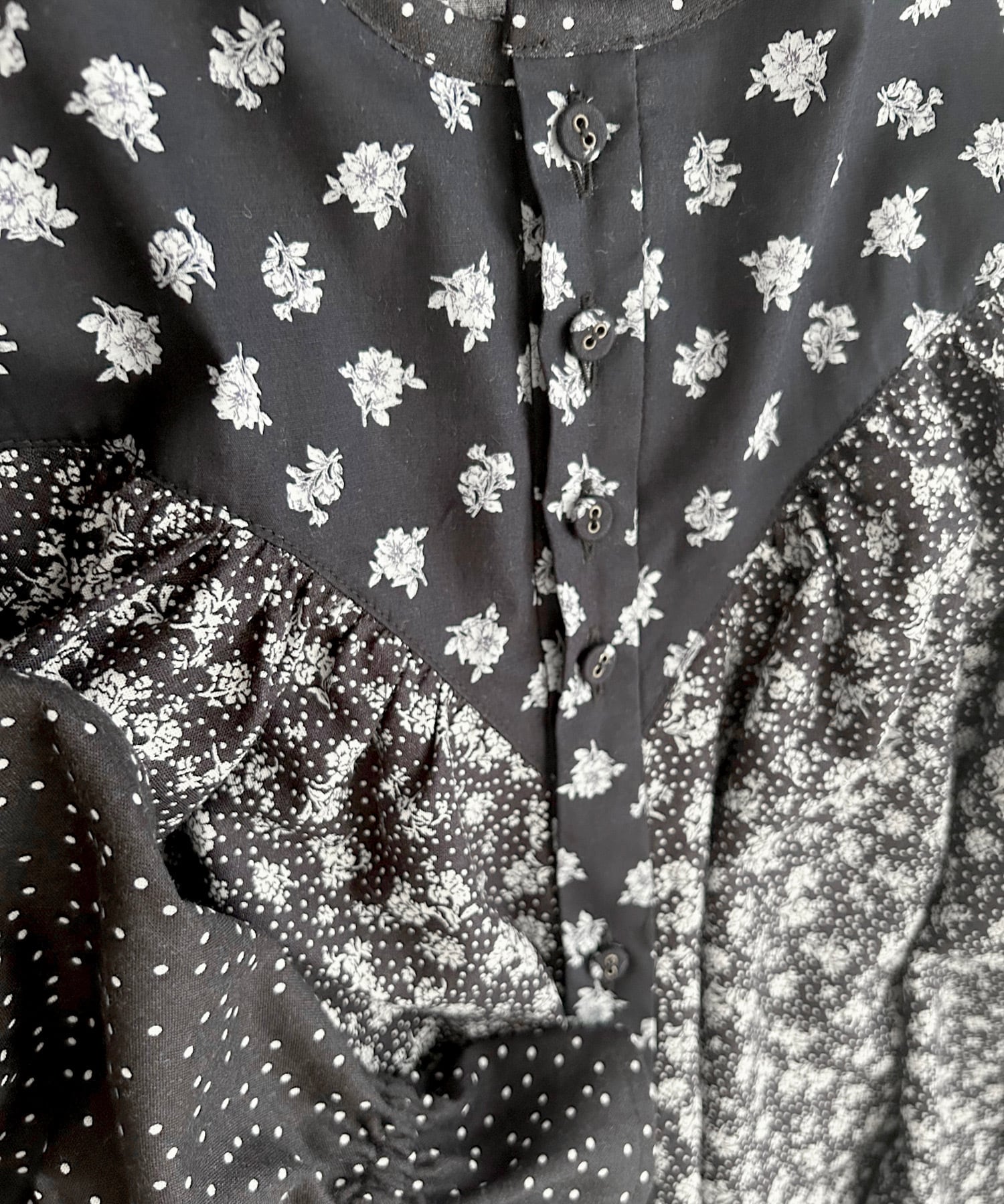 ・前あきに並んだ小さなくるみボタン